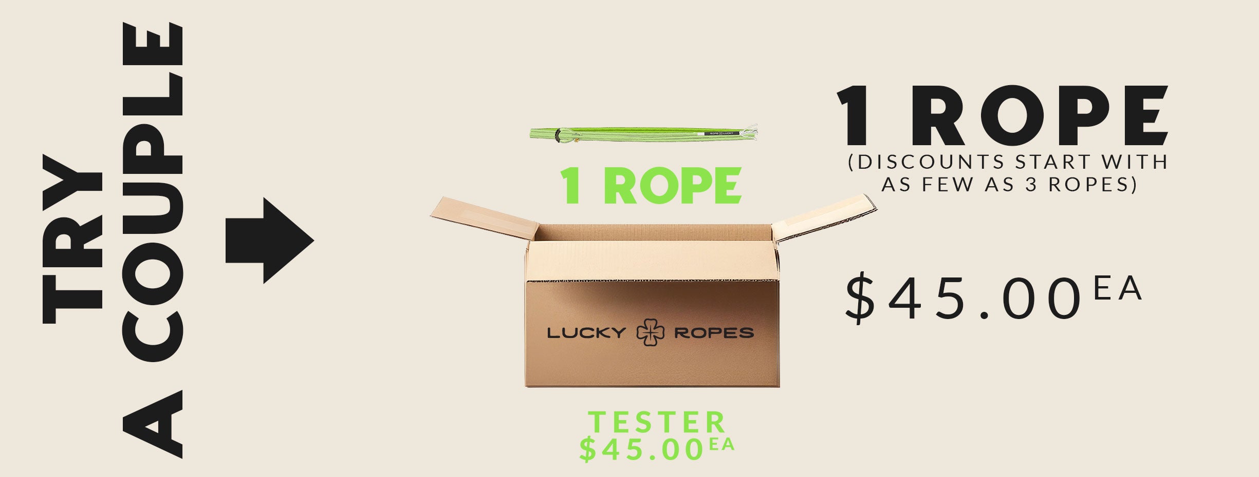 Just by 3 at a time (mix 'n match) and you're already saving! We'll knock $3 a rope off, just for helping us fill the box.